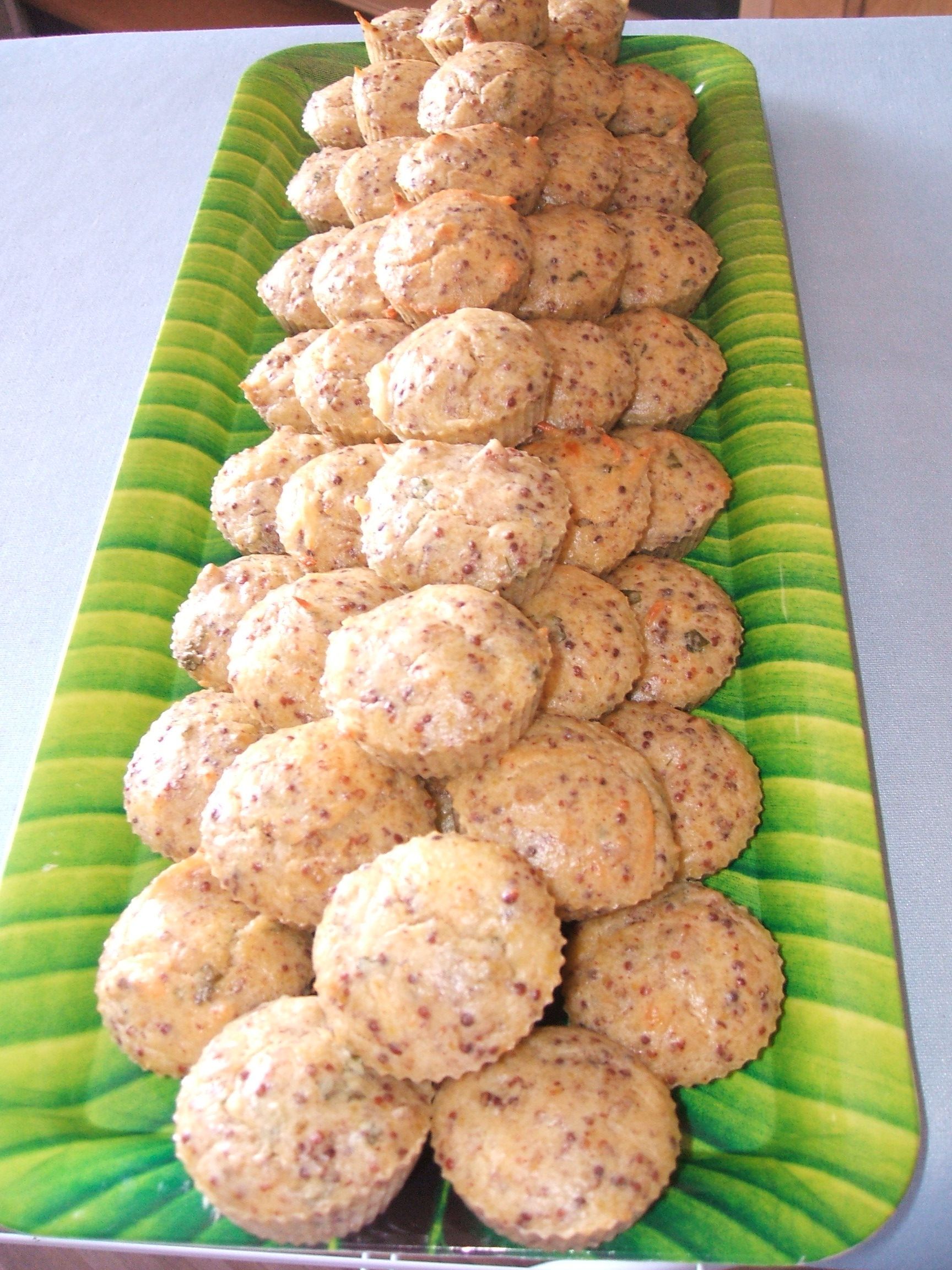 Préchauffez le four à 180°. Faites fondre le beurre. Dans un saladier, versez la farine avec le levure. Ajoutez les oeufs un à un en alternant avec une càs de moutarde jusqu'à épuisement.